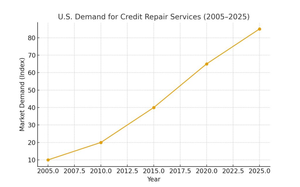 Graph Idea: U.S. demand for credit repair services (2005–2025 trend chart).